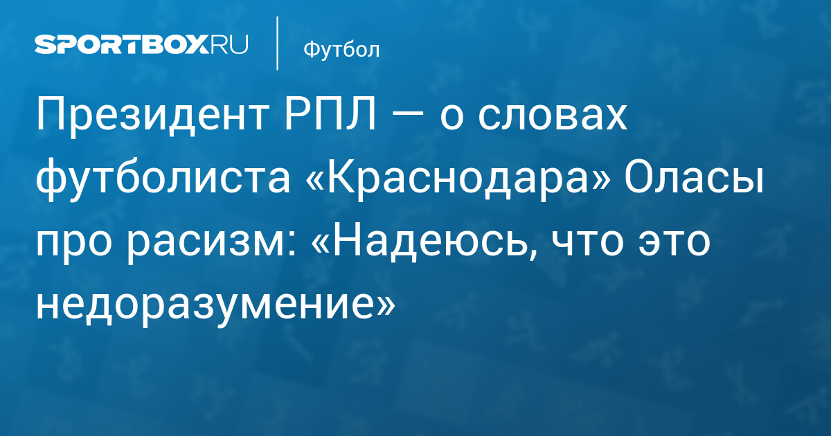 Президент РПЛ — о словах футболиста «Краснодара» Оласы про расизм: «Надеюсь, что это недоразумение»