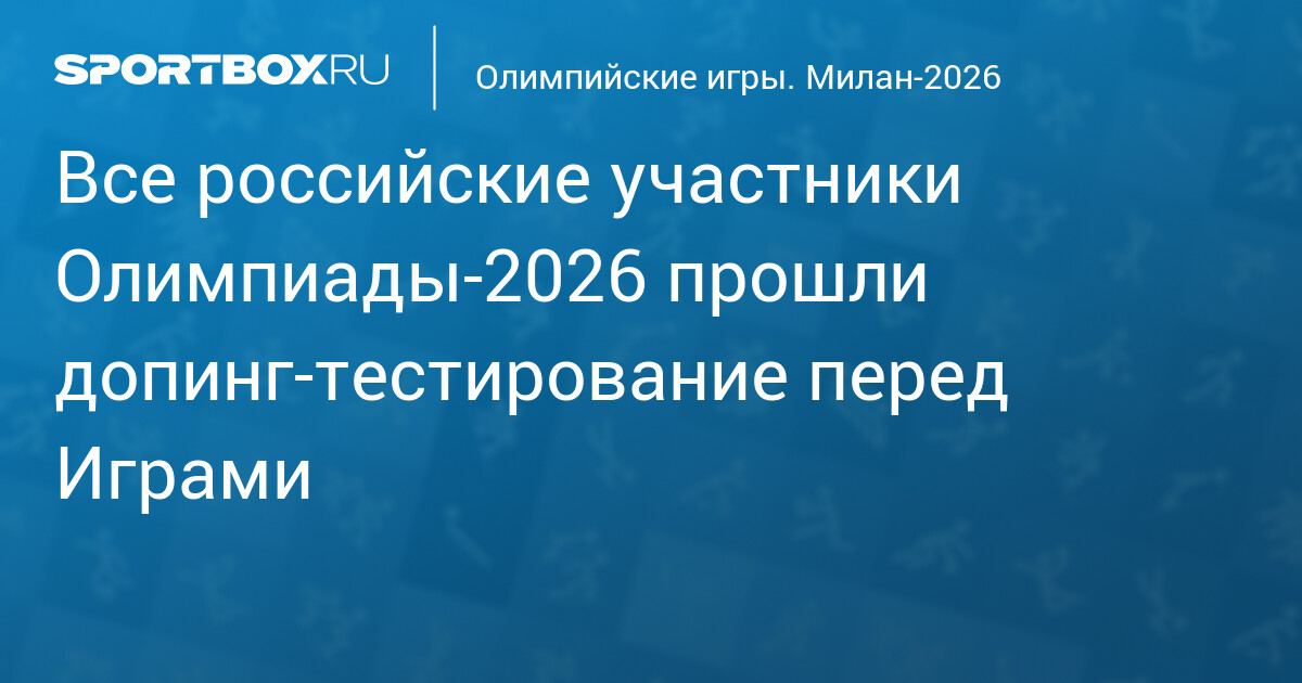 Все российские спортсмены, которые примут участие в Олимпийских играх‑2026 в Италии, прошли допинг‑тестирование, сообщил глава Международного агентства допинг‑тестирования (ITA) Жак Антенен.